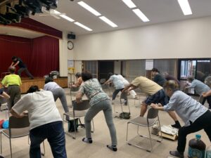 肩、首をほぐす事から 転ばない健脚でいられるための体操を1時間集中して行いました。
