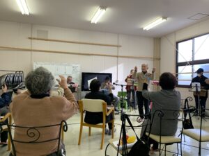 サロン 2026.01.12 なかよしクラブの皆さんと 11/27 なかよしクラブの皆さんに来ていただき 懐かしい昭和歌謡曲をたくさん歌いました。 歌に合わせて鈴を鳴らしたり 全員参加で音楽を楽しめた事がとても楽しく 充実した時間となりました。 なかよしクラブの皆さん ありがとうございました♪